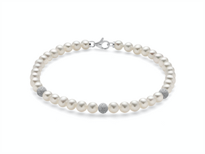 Bracciale Miluna perle coltivate di acqua dolce 4-4,5 mm con 3 sfere satinate in oro bianco 18 kt