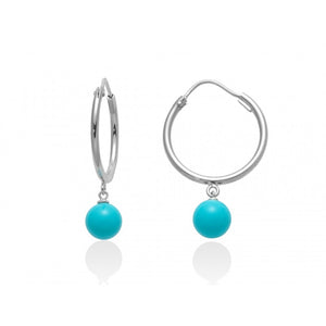 Orecchini Miluna a cerchio in argento 925 e perle di corallo turchese 9 mm