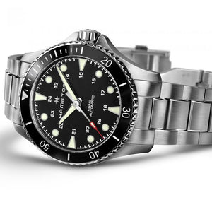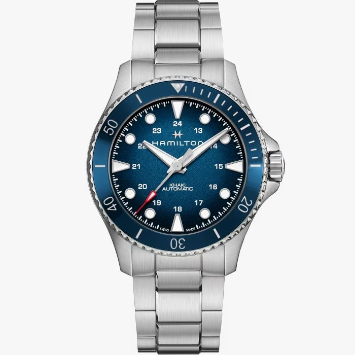 L’eleganza incontra la sportività in questo segnatempo di ispirazione acquatica, perfetto per rilassarsi al mare o esplorare le profondità oceaniche. La lunetta in ceramica con numeri incisi rende il Khaki Navy Scuba Automatic l’orologio perfetto per gli esploratori marini, proteggendolo da elementi corrosivi come sabbia e sale. Grazie alla cassa 43 mm, impermeabilità fino a 30 bar (300 m) e quadrante facilmente leggibile, questo orologio ad elevate prestazioni saprà accompagnarti in tutte le tue avventure, sull’acqua o sotto la superficie.