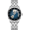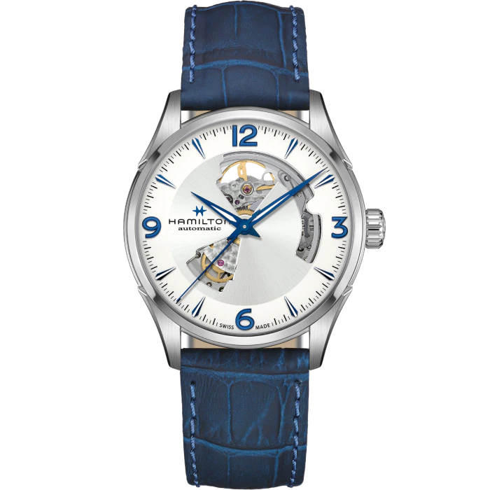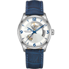Movimento a tre sfere con data e riserva di carica superiore di 80 ore, l'H-10 presenta elaborati motivi colimaçon e perlati a contrasto per i modelli American Classic e superfici pulite per gli orologi da pilota.